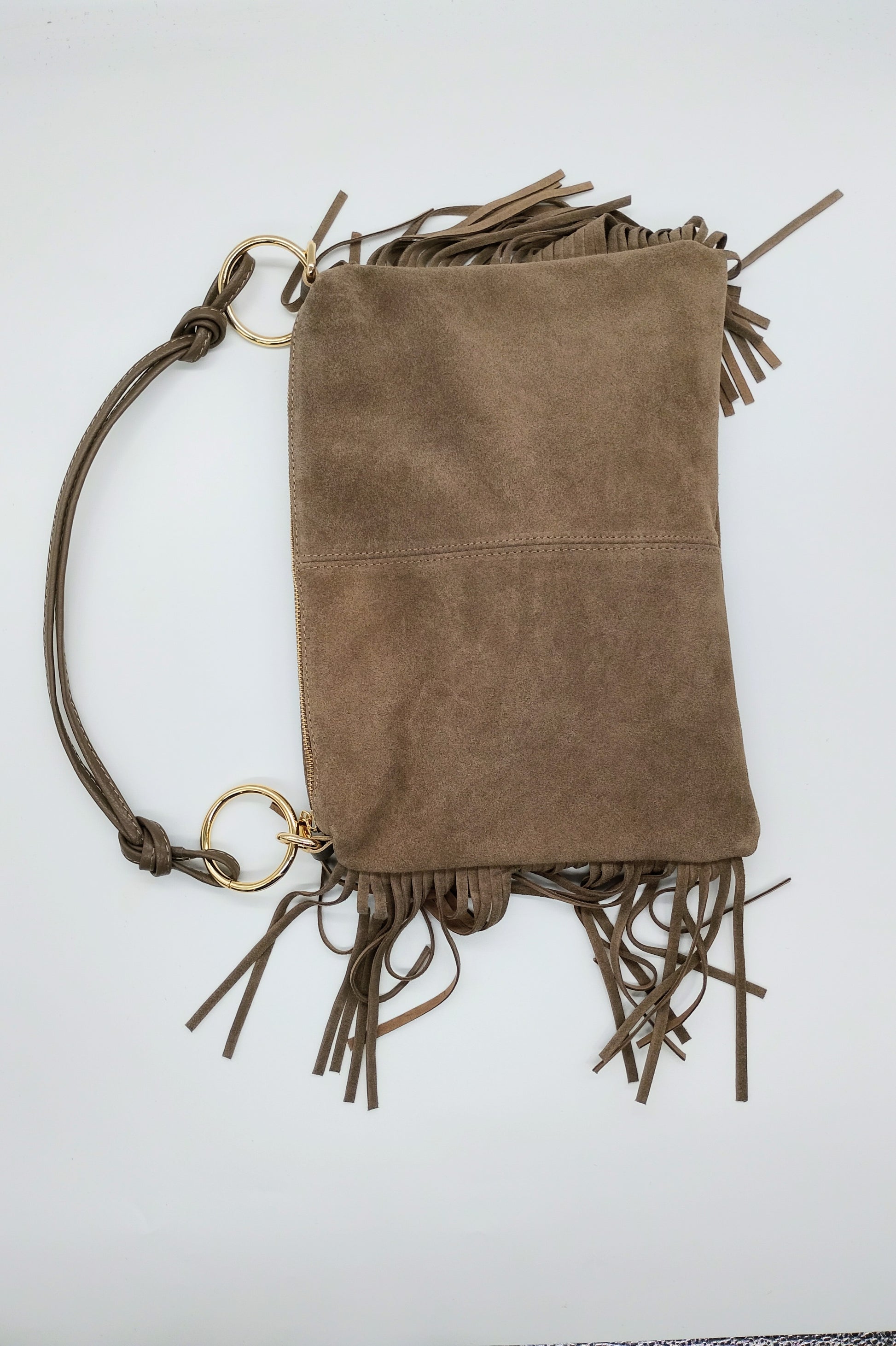 Questa elegante Borsa frange anelli oro è un must-have per ogni fashionista. Con simpatiche frange e dettagli in oro, questa borsa aggiungerà un tocco di glamour a ogni look. Disponibile in due colorazioni: moro e taupe. Acquista ora e completa il tuo outfit con stile!Borsa frange anelli oro