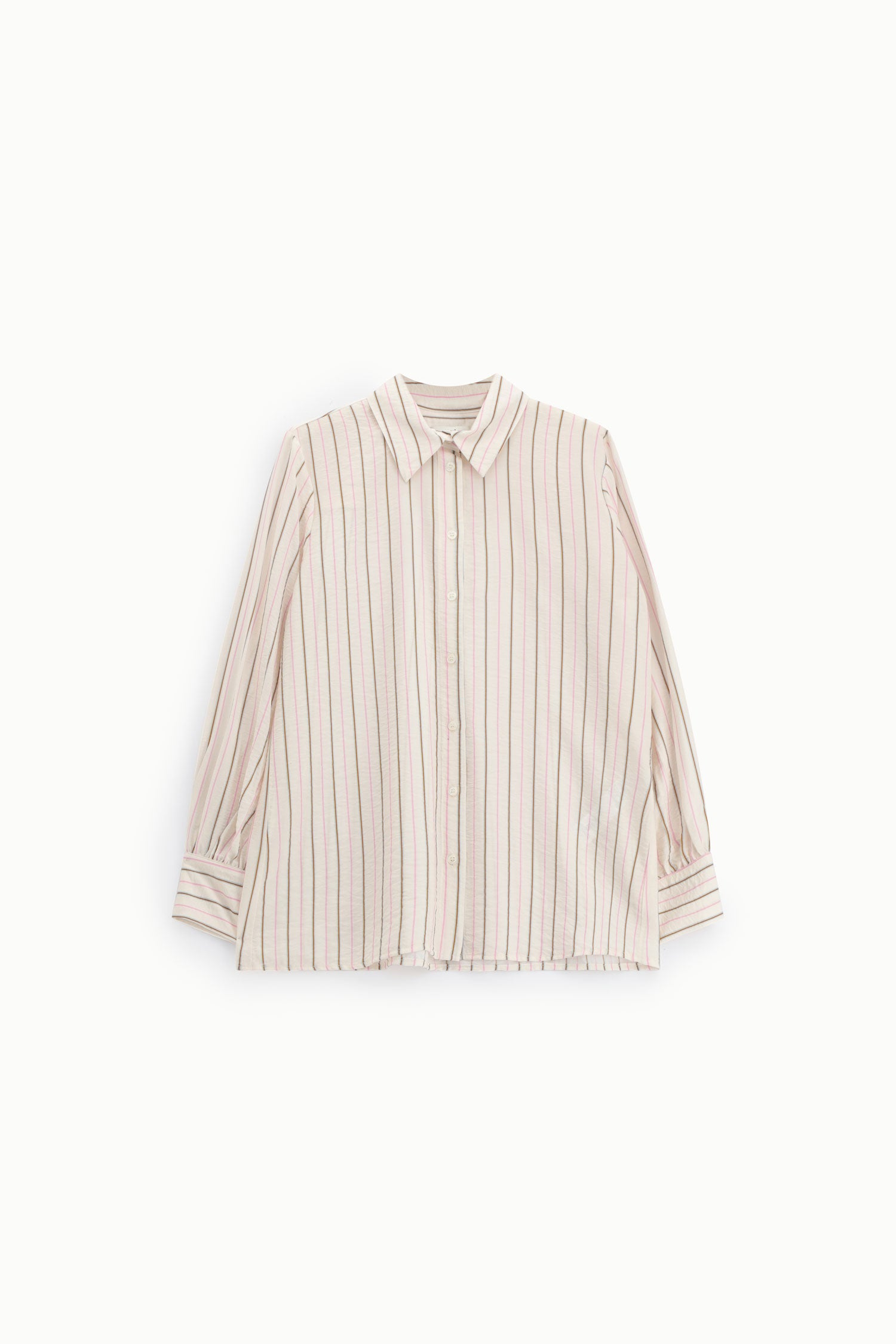 Questa camicia dal taglio regolare si distingue grazie alle sue sottili righe verticali e ai dettagli curati come il colletto classico e i polsini con bottoni. Perfetta da indossare ogni giorno, aggiunge un tocco originale e femminile al tuo look, lasciandoti libera di sentirti sempre a tuo agio.