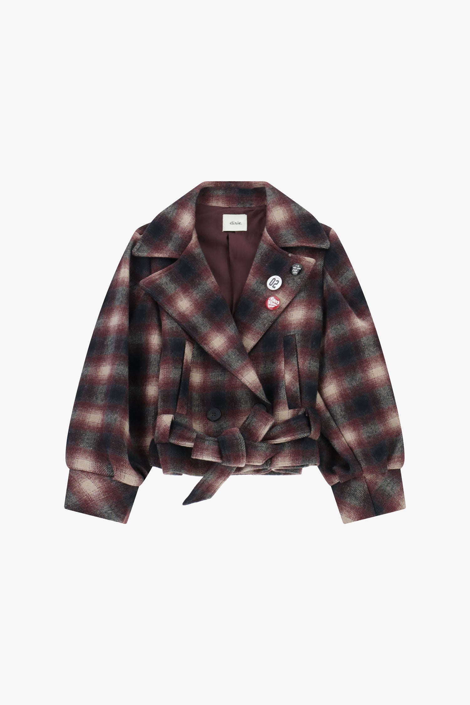 Cappotto corto stampa check con cintura DIXIE