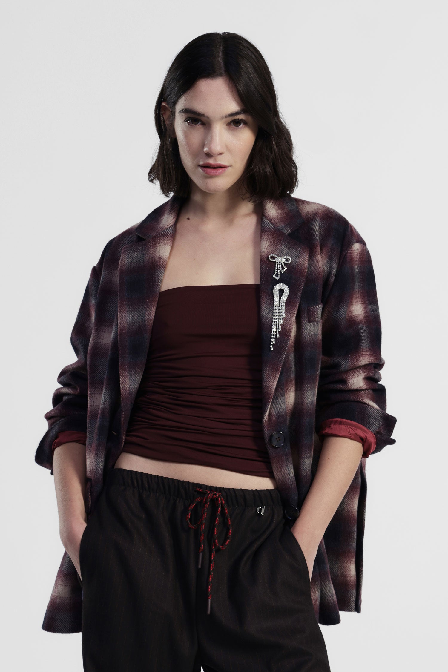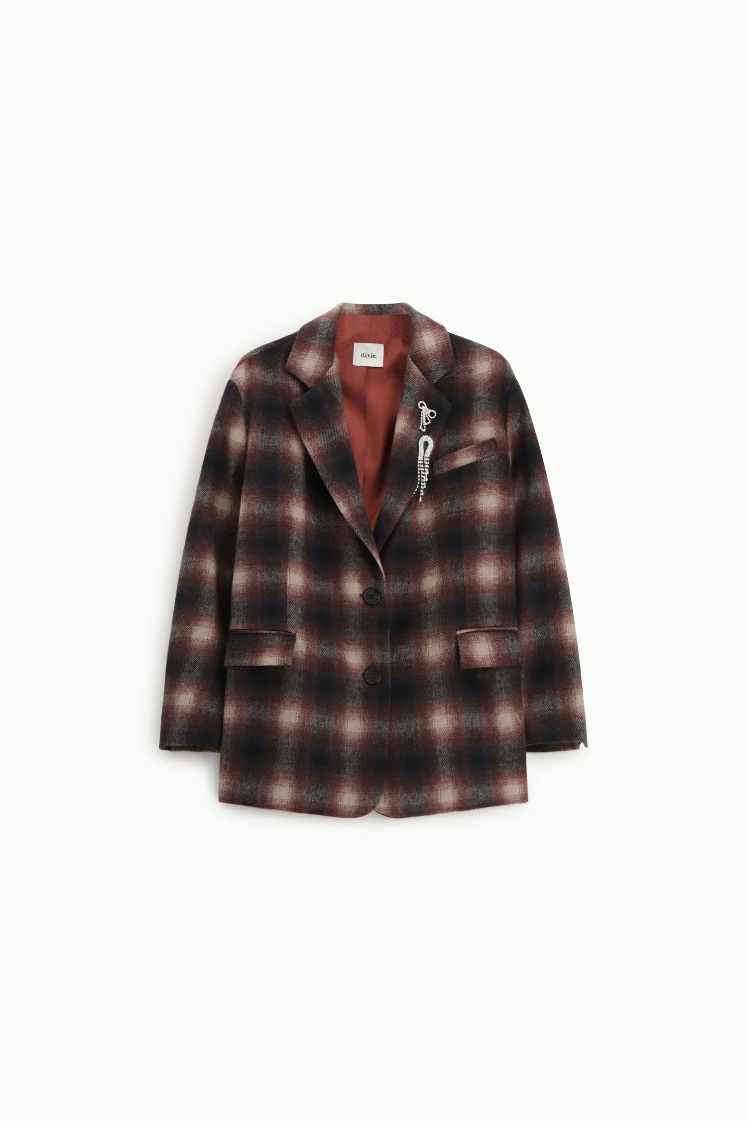 Blazer a quadri con spilla decorativa e tasche DIXIE