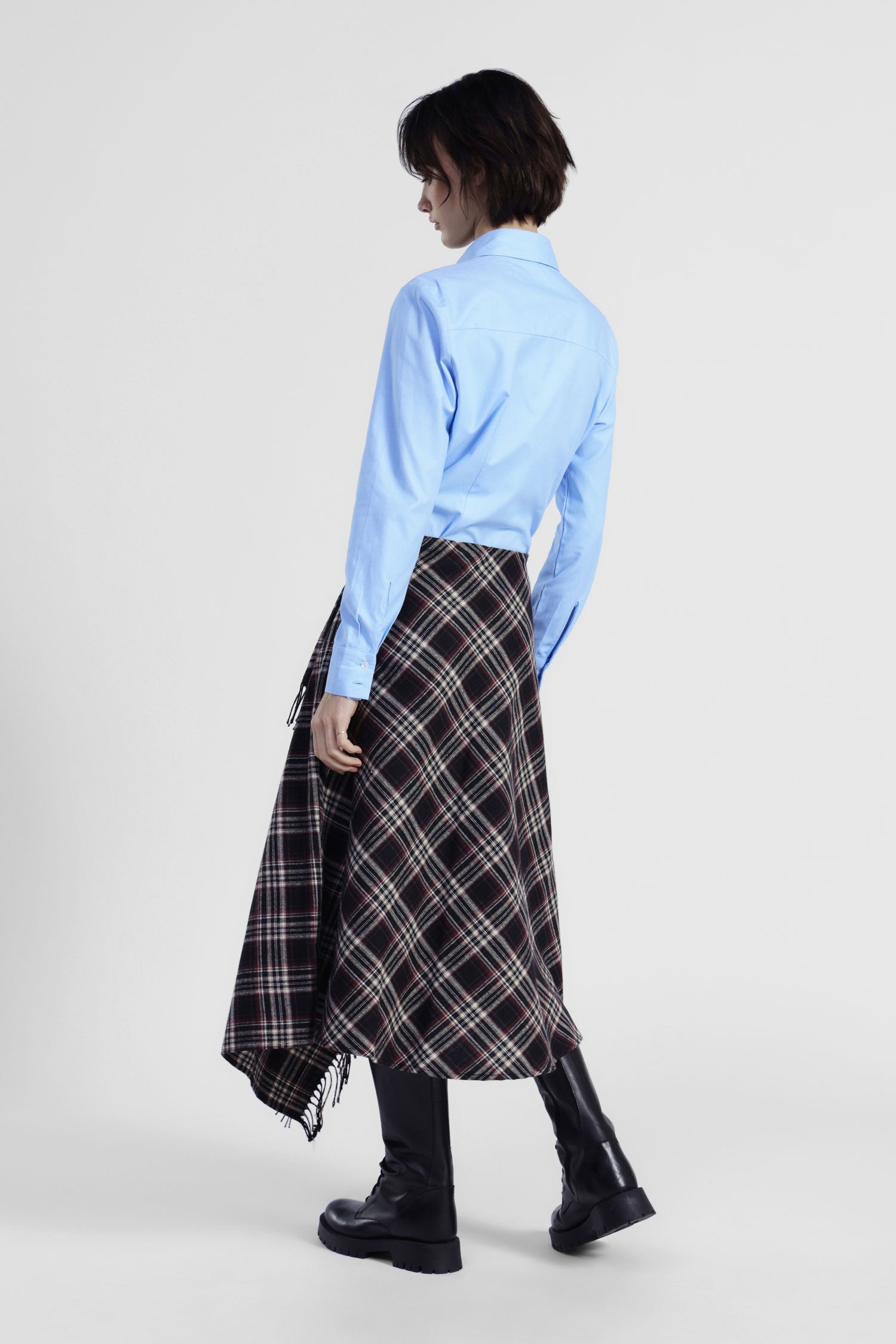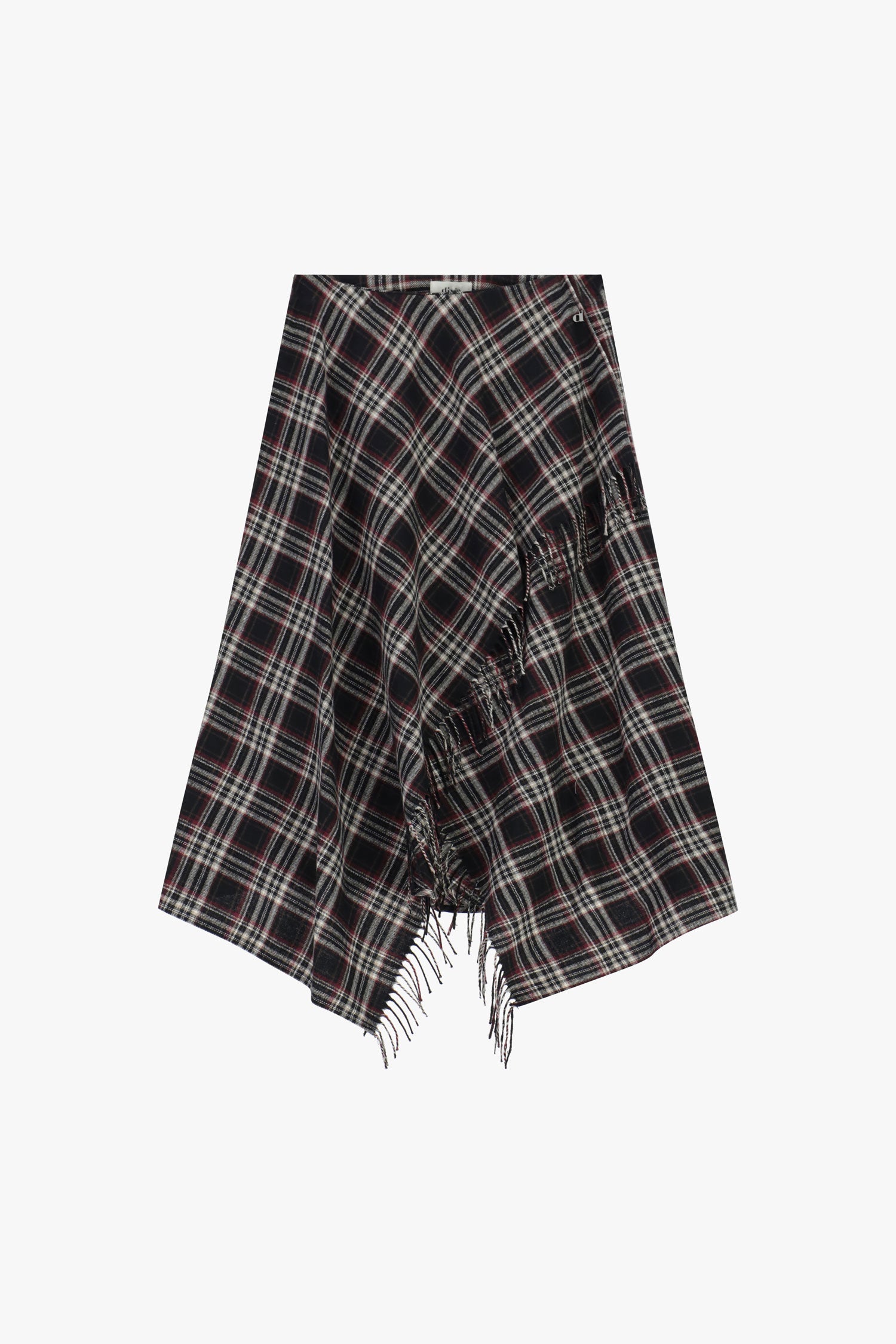 Gonna lunga asimmetrica a quadri con frange DIXIE