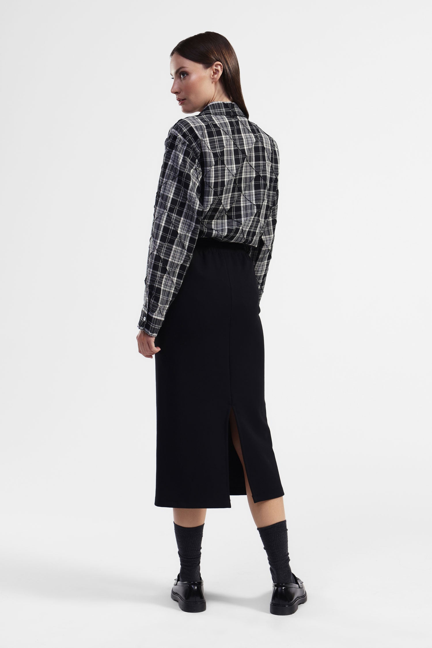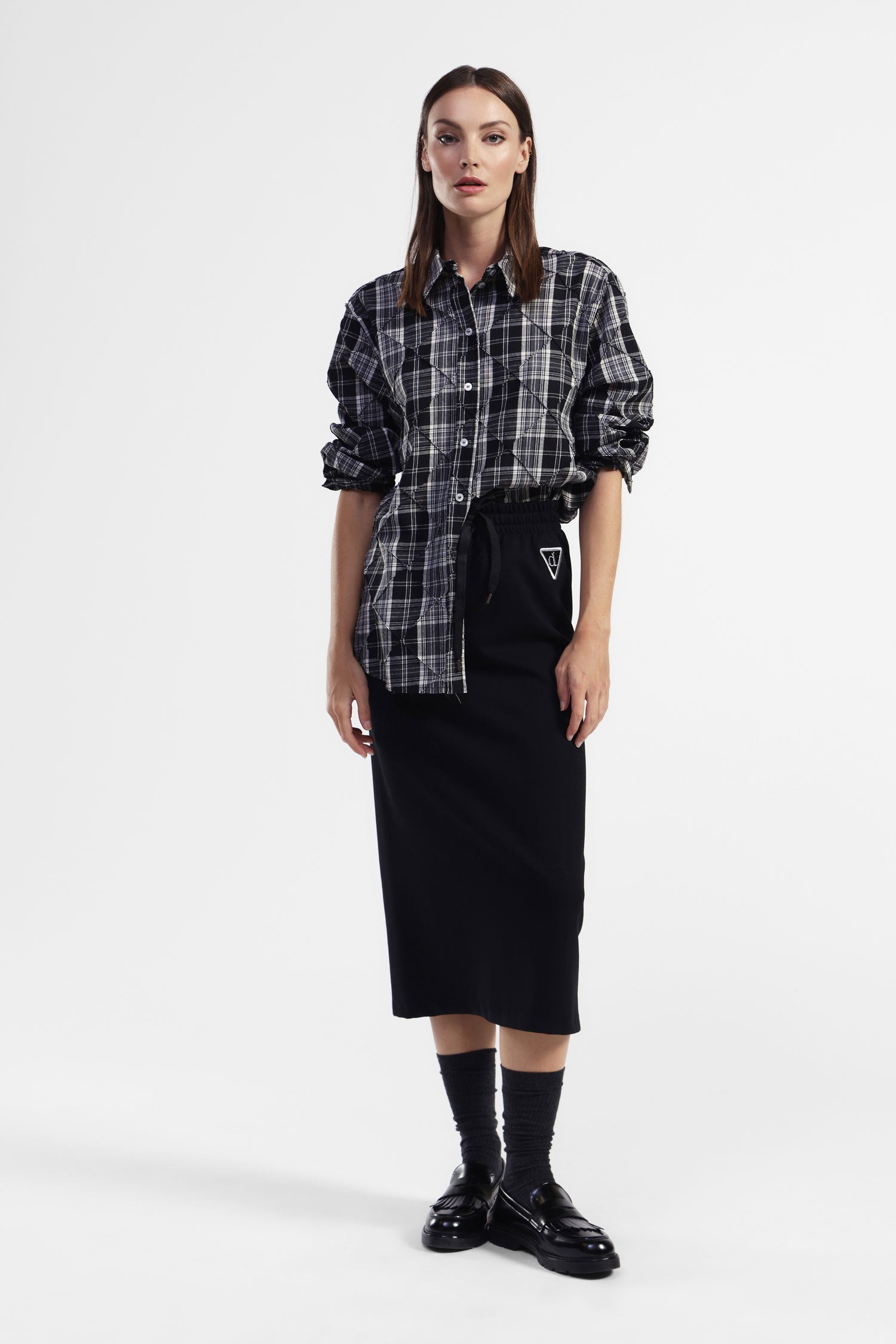 Porta il tuo stile quotidiano a un livello superiore con questa gonna midi a vita alta. Il design minimalista e il laccio regolabile assicurano comfort e versatilità, perfetti per affrontare ogni giornata con grinta e femminilità. Ideale per essere abbinata a una camicia casual o una blusa raffinata.