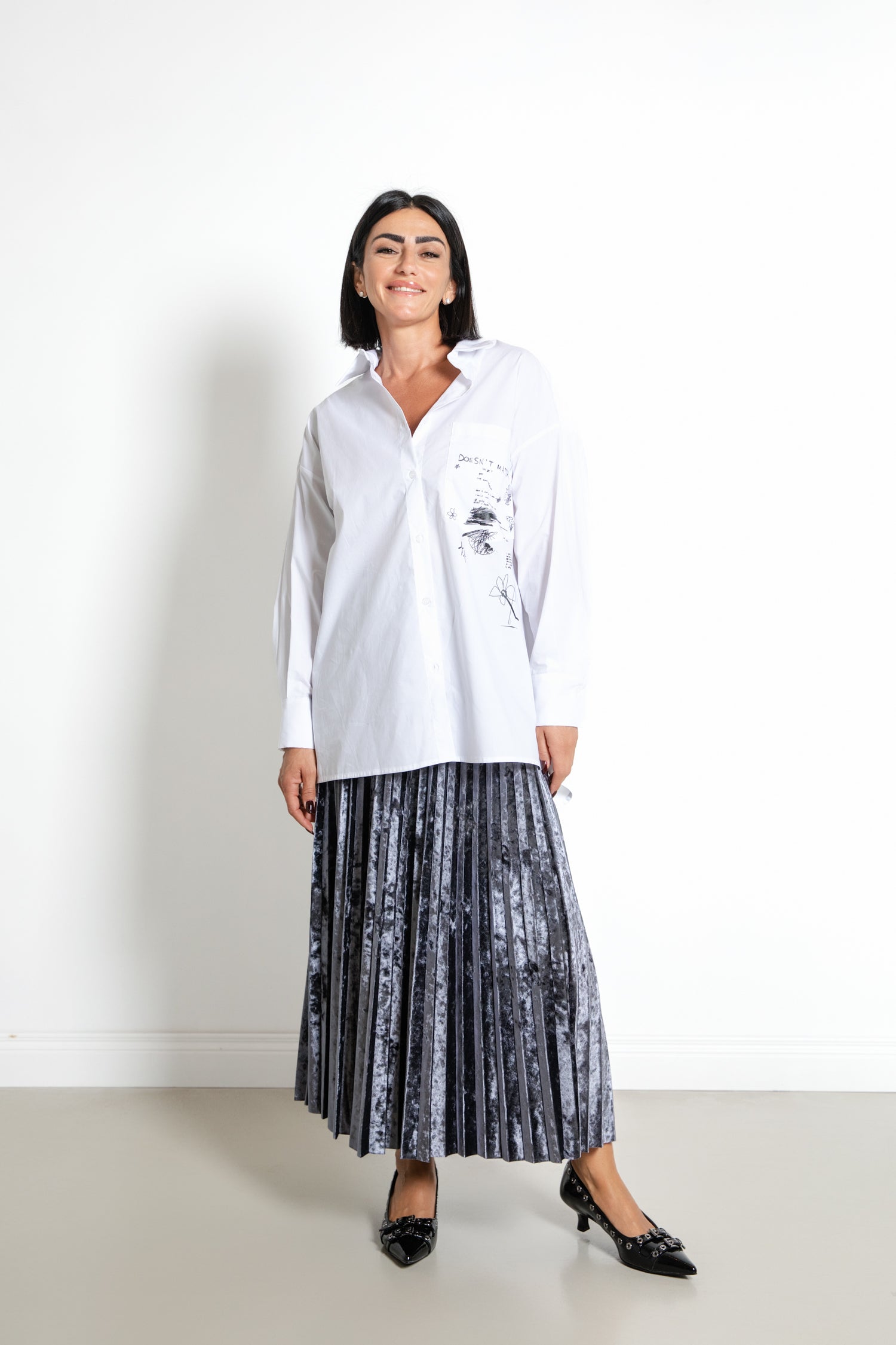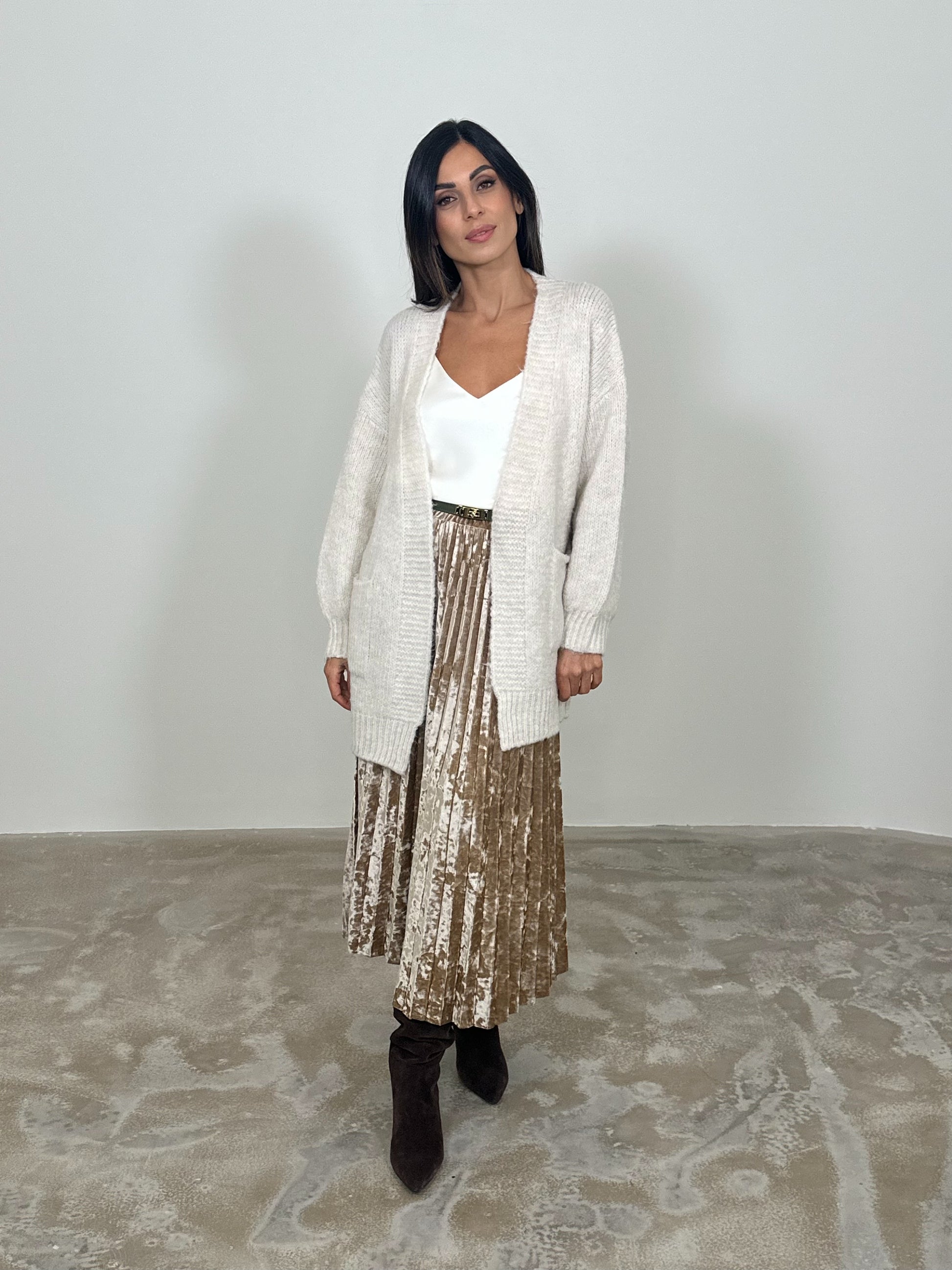 Gonna midi plissettata effetto ciniglia