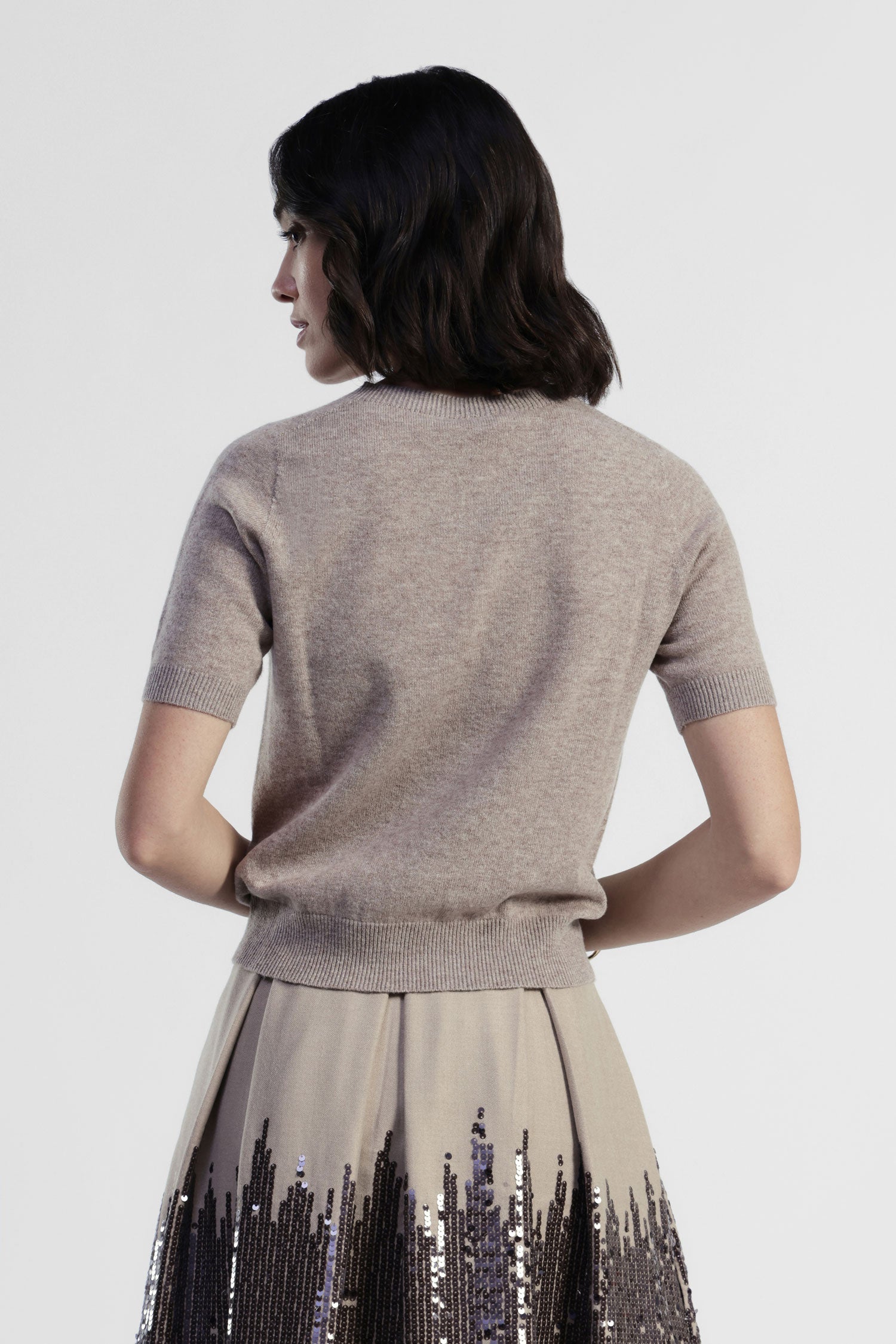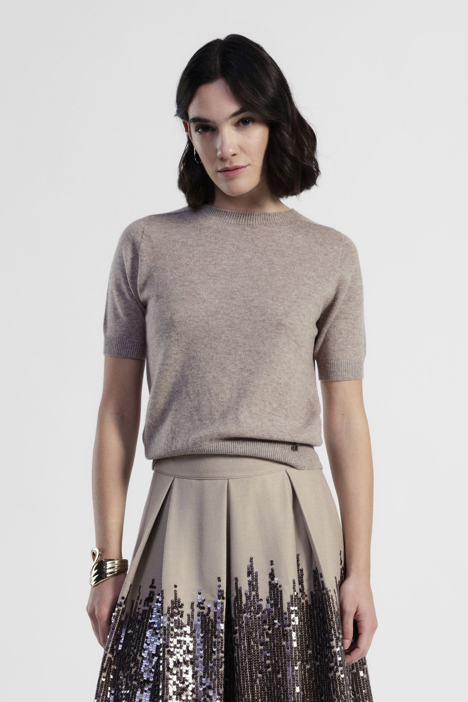 Le maniche corte di questo maglione rendono facile giocare con gli abbinamenti, sia sopra una gonna plissettata che con pantaloni dal taglio pulito. Il bordo a coste dona struttura, mentre il taglio regolare accompagna le forme senza appesantirle. Sentiti comoda e originale ogni giorno, anche nei look più semplici.