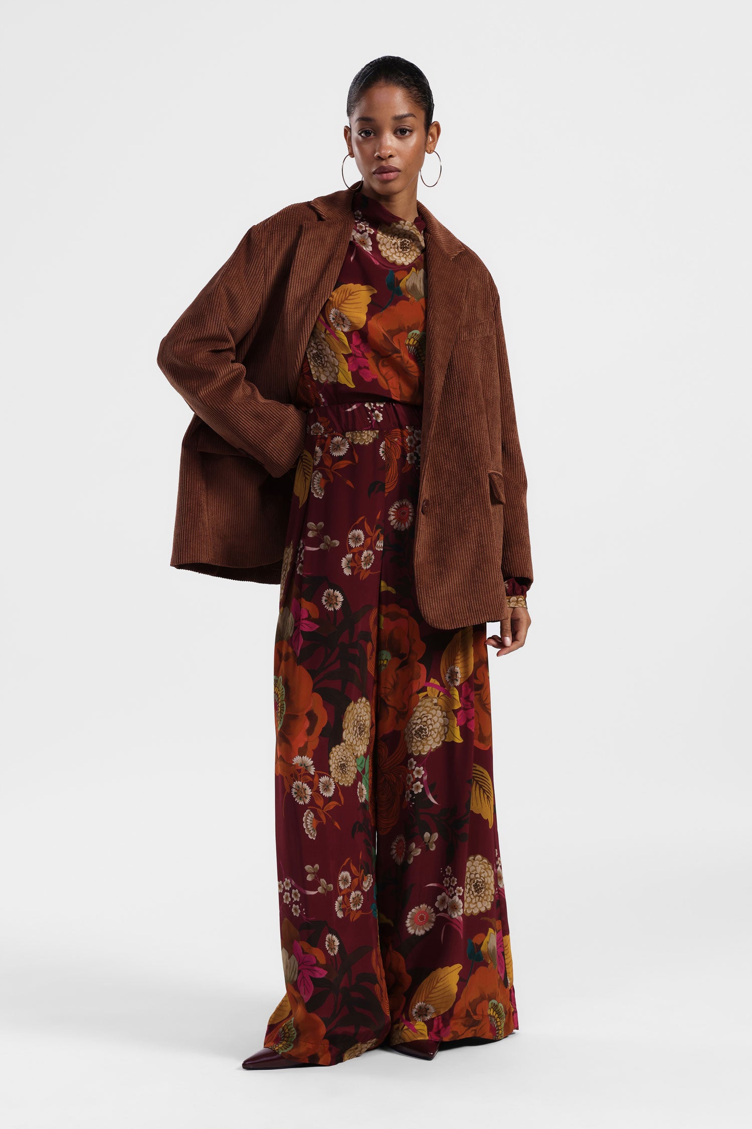 Questi pantaloni palazzo stampati a vita alta sono perfetti per chi cerca uno stile sofisticato e confortevole. Con il loro design ampio, offrono una libertà di movimento senza pari, mantenendo al contempo un'eleganza distintiva. Ideali per una giornata in ufficio o un'uscita serale, ti faranno sentire unica e raffinata.