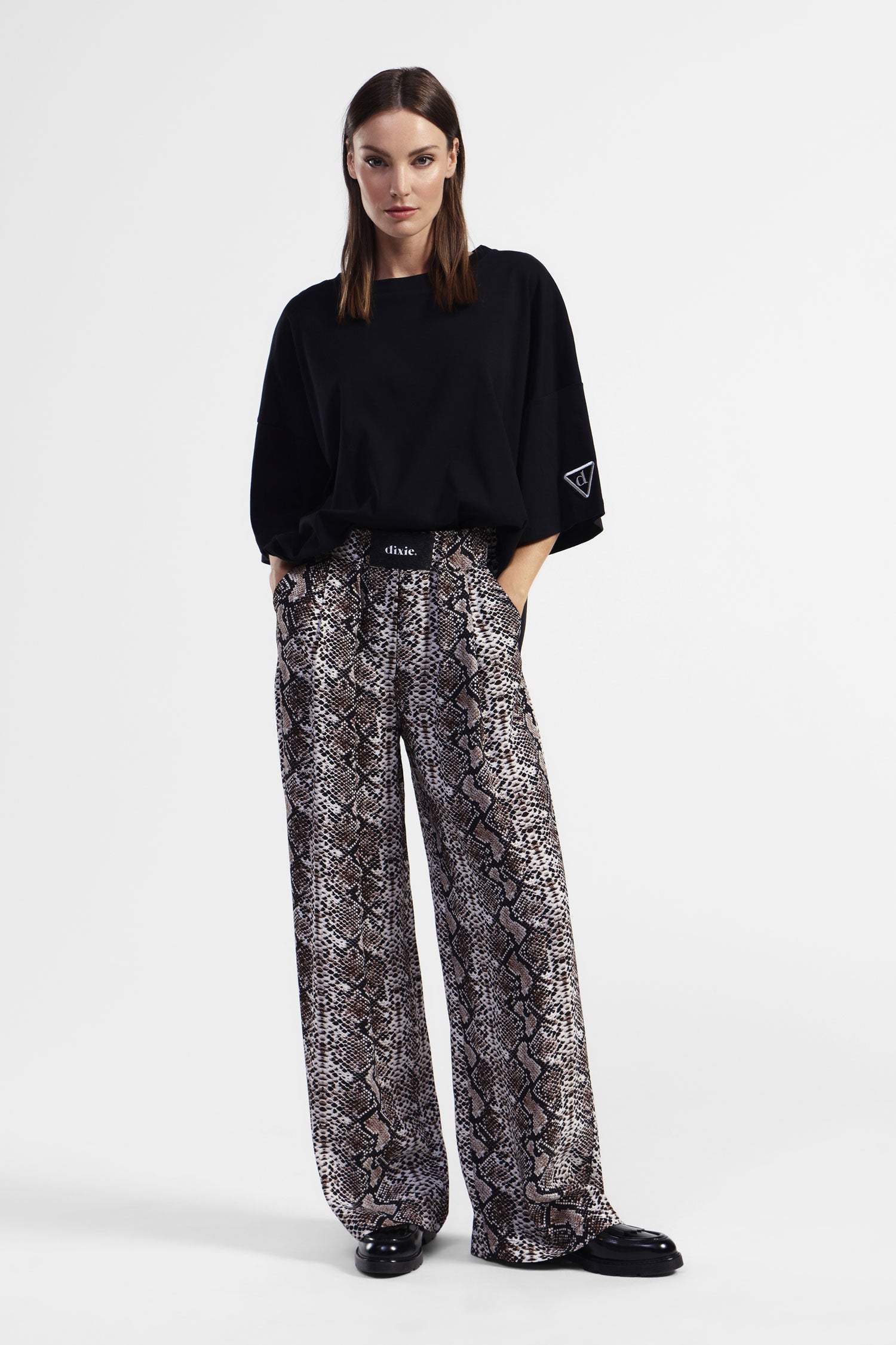 Pantaloni palazzo stampa serpente vita alta